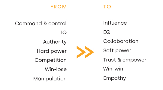 In summary, contemporary leadership has shifted from an authority-based model to an influence-based model, however leaders still struggle to achieve great results without authority and direct control.